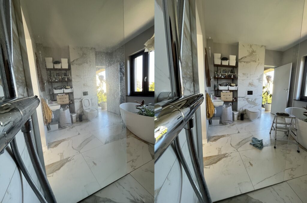 Profesjonalne odkamienianie kabiny prysznicowej oraz impregnacja - przed i po