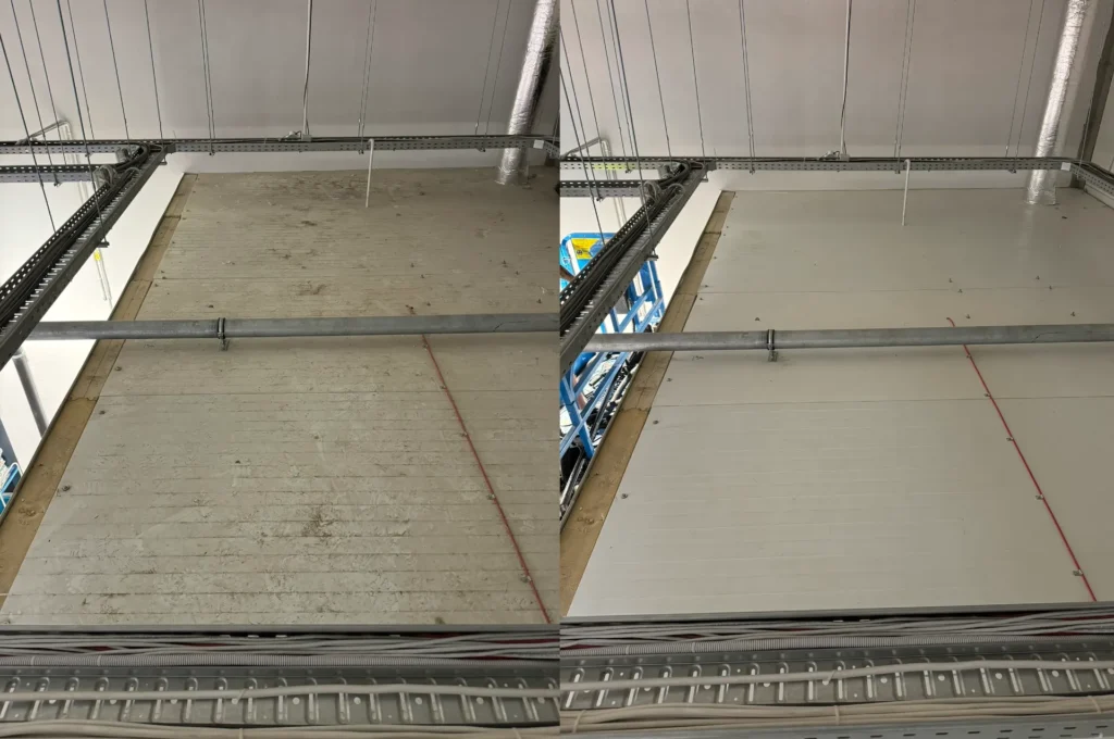 Czyszczenie paneli fotowoltaicznych - efekt przed i po